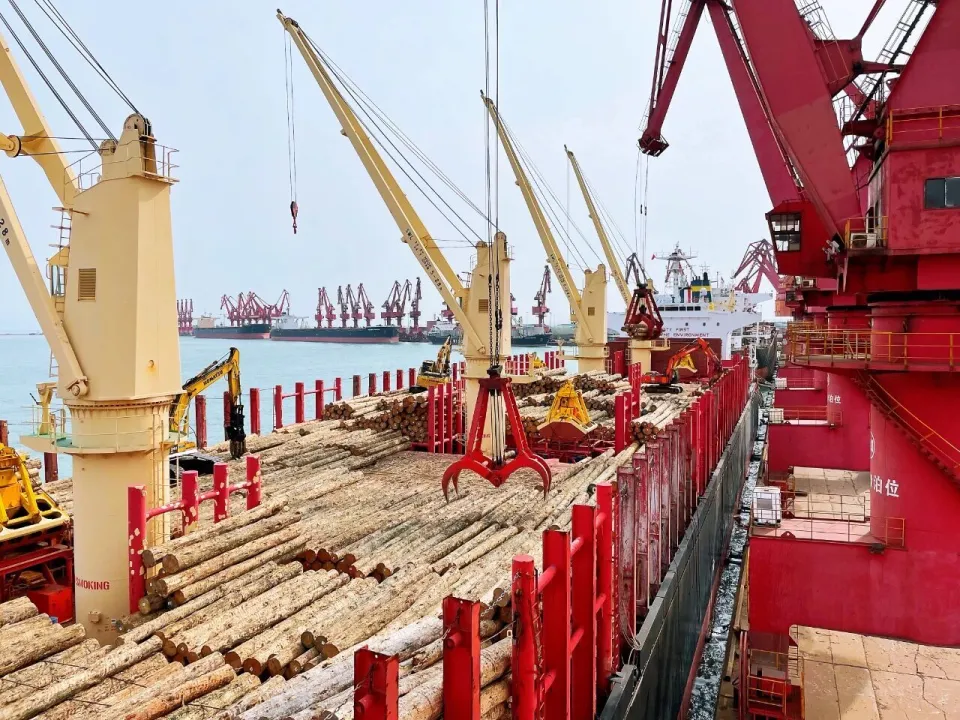 Подобные сцены стали обычным явлением в порту Жичжао в порту Шаньдун. Будучи ключевым узлом в рамках инициативы «Один пояс, один путь», порт Жичжао использует свою стратегическую роль связующего звена между внутренними и международными рынками, обеспечивая естественный путь для импорта древесины. За первые восемь месяцев этого года порт Жичжао импортировал более 7 миллионов кубометров бревен, что составляет примерно треть от общего объема импорта бревен в Китай. Несмотря на вялый рынок традиционной строительной древесины, порт сохранил динамику роста.